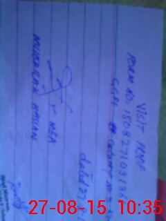 | Monitoring Date: 27-08-2015 | Start Time: 27-08-2015 10:15 AM | End Time: 27-08-2015 10:36 AM | Name of MEA: Z-**** Ha**** | |