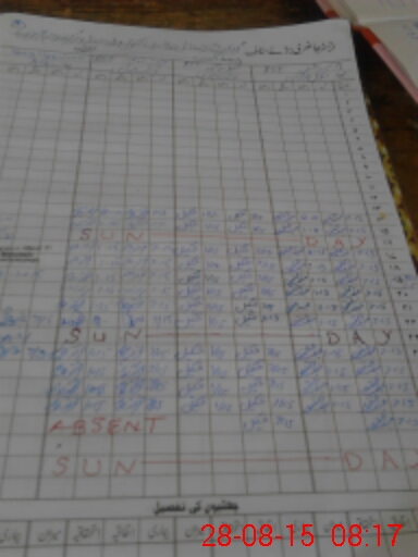 | CNIC | Full Name | Designation | R/C | Absence During Last Calender Month |