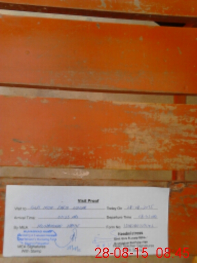 | Monitoring Date: 28-08-2015 | Start Time: 28-08-2015 07:28 AM | End Time: 28-08-2015 08:47 AM | Name of MEA: Mu**** Ha**** (R**** | |