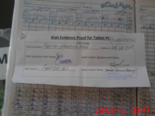 | Attendance Register | Head Teacher | MEA with School | Visit Proof |
