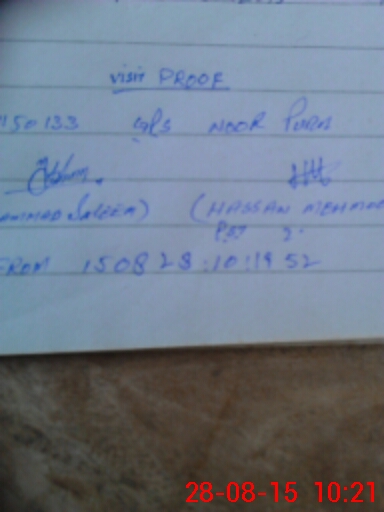 | Monitoring Date: 28-08-2015 | Start Time: 28-08-2015 09:40 AM | End Time: 28-08-2015 10:23 AM | Name of MEA: Mu**** Sa**** BN**** 33 | |