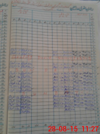 | CNIC | Full Name | Designation | R/C | Absence During Last Calender Month |