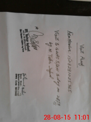 | Monitoring Date: 28-08-2015 | Start Time: 28-08-2015 10:25 AM | End Time: 28-08-2015 11:09 AM | Name of MEA: M.Ta**** Iq**** (S**** | |