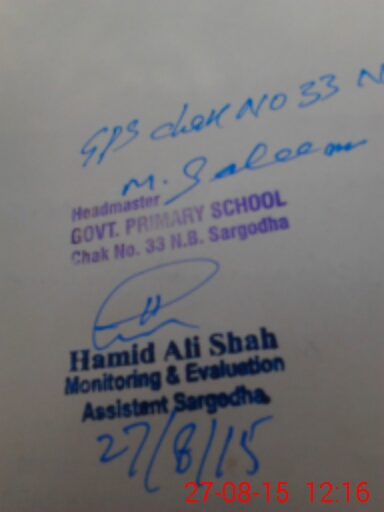 | EMIS Code: 38420388 | Name of School: GPS CHAK NO.33 NB | |||