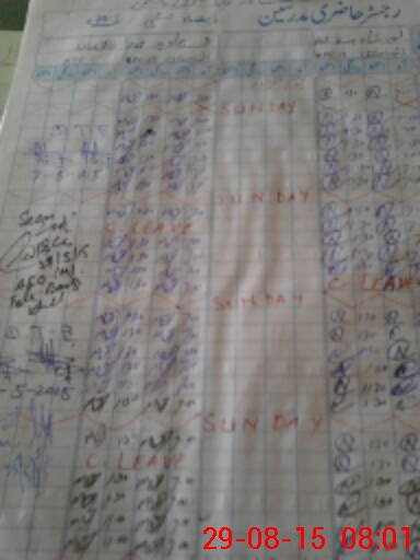 | CNIC | Full Name | Designation | R/C | Absence During Last Calender Month |