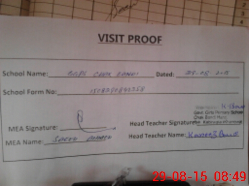 | Attendance Register | Head Teacher | MEA with School | Visit Proof |