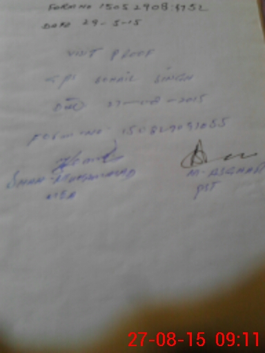 | Monitoring Date: 27-08-2015 | Start Time: 27-08-2015 08:41 AM | End Time: 27-08-2015 09:12 AM | Name of MEA: Sh**** Mu**** | |