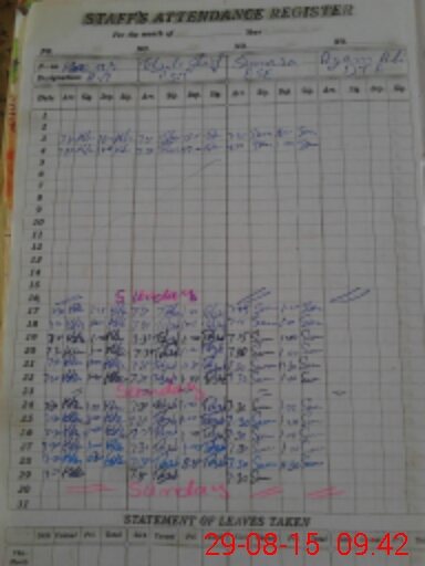 | CNIC | Full Name | Designation | R/C | Absence During Last Calender Month |