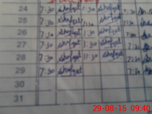 | Monitoring Date: 29-08-2015 | Start Time: 29-08-2015 09:11 AM | End Time: 29-08-2015 09:46 AM | Name of MEA: Z.**** M.Is**** | |