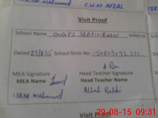 | EMIS Code: 36420384 | Name of School: GGPS 166/10-R, KHANEWAL | |||