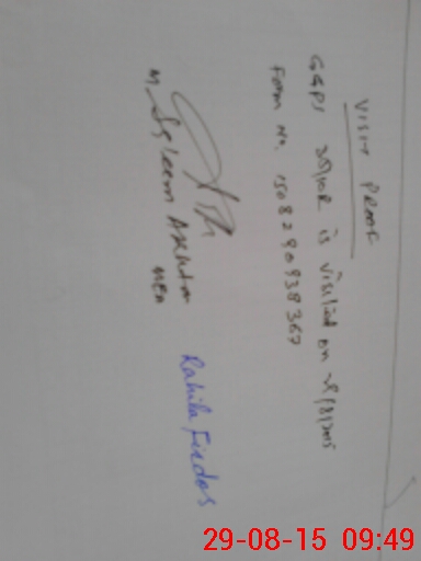 | Monitoring Date: 29-08-2015 | Start Time: 29-08-2015 09:21 AM | End Time: 29-08-2015 10:01 AM | Name of MEA: MU**** SA**** AK**** 13**** | |