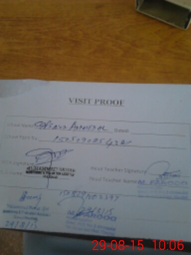| Attendance Register | Head Teacher | MEA with School | Visit Proof |