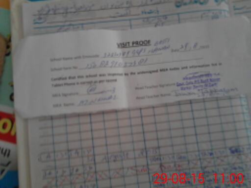 | Attendance Register | Head Teacher | MEA with School | Visit Proof |