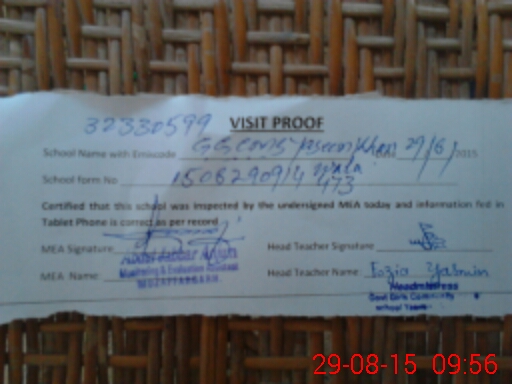 | Attendance Register | Head Teacher | MEA with School | Visit Proof |
