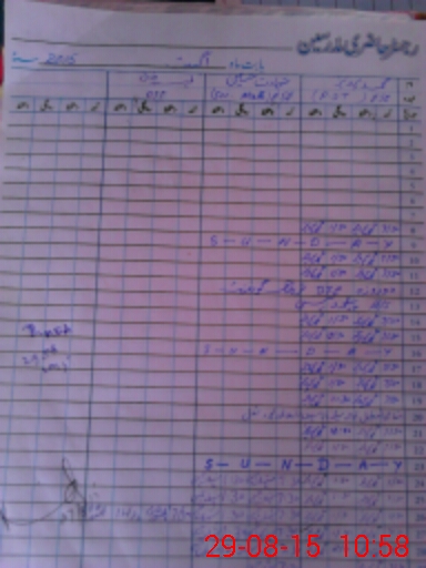 | CNIC | Full Name | Designation | R/C | Absence During Last Calender Month |