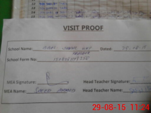 | Attendance Register | Head Teacher | MEA with School | Visit Proof |