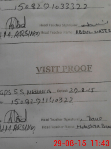 | Attendance Register | Head Teacher | MEA with School | Visit Proof |