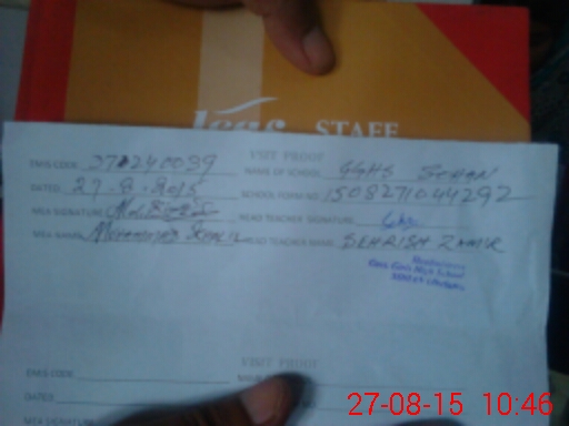 | School Visited by School Health & Nutrition Supervisor (No. of Visits) | Name1: | SALMAN DAR | Name2: | ||