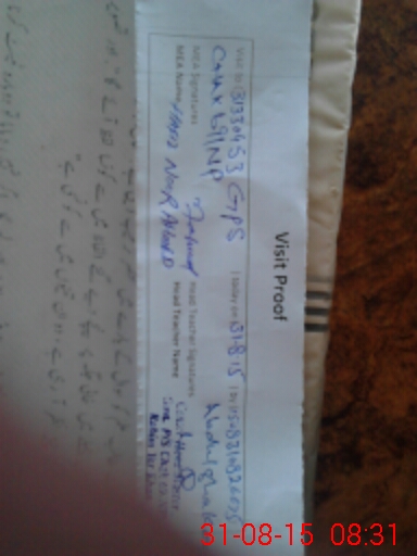 | School Visited by School Health & Nutrition Supervisor (No. of Visits) | 1 | Name1: | Muhammad Shakeel Taj | Name2: | Null |