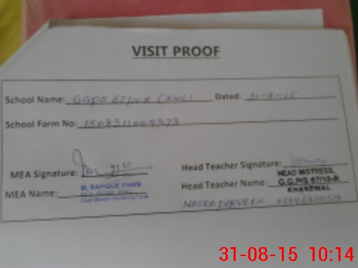 | EMIS Code: 36420387 | Name of School: GGES 67/10-R, KHANEWAL | |||