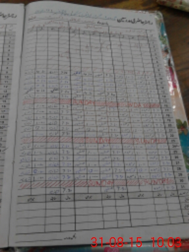 | CNIC | Full Name | Designation | R/C | Absence During Last Calender Month |