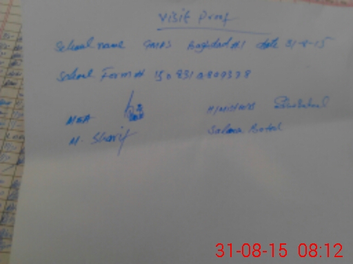 | School Visited by School Health & Nutrition Supervisor (No. of Visits) | 1 | Name1: | Shahid Iqbal | Name2: | |