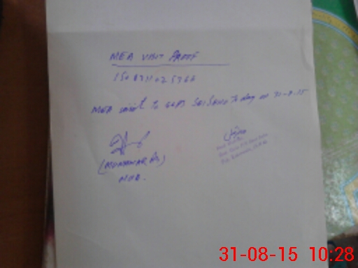 | Monitoring Date: 31-08-2015 | Start Time: 31-08-2015 10:14 AM | End Time: 31-08-2015 10:31 AM | Name of MEA: Mu**** Al**** ex**** | |