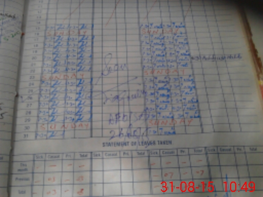 | CNIC | Full Name | Designation | R/C | Absence During Last Calender Month |
