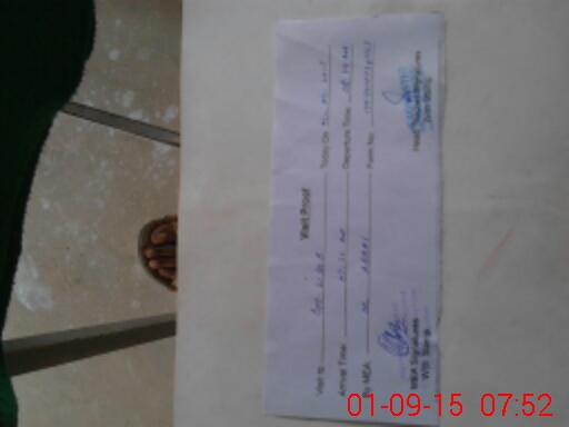 | Monitoring Date: 01-09-2015 | Start Time: 01-09-2015 07:30 AM | End Time: 01-09-2015 07:52 AM | Name of MEA: Mu**** Ab**** | |