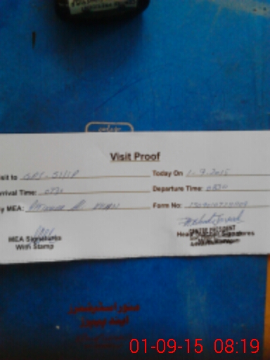 | Monitoring Date: 01-09-2015 | Start Time: 01-09-2015 07:28 AM | End Time: 01-09-2015 08:23 AM | Name of MEA: If**** Al**** Kh**** (R**** | |