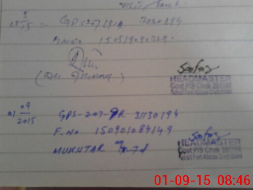 | Name: MU**** SA**** Designation: (School Headmaster's/Headmistress's) PTC/JV Phone/Cell Number: 03**** |