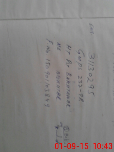 | Monitoring Date: 01-09-2015 | Start Time: 01-09-2015 10:17 AM | End Time: 01-09-2015 10:54 AM | Name of MEA: Mu**** ah**** BN**** 29 | |