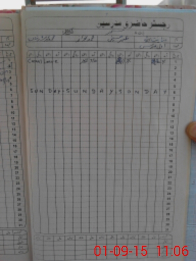 | CNIC | Full Name | Designation | R/C | Absence During Last Calender Month |