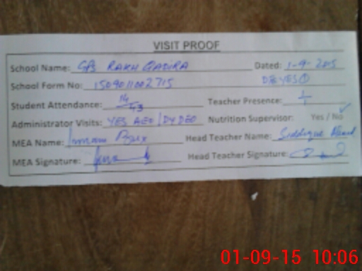 | School Visited by School Health & Nutrition Supervisor (No. of Visits) | Name1: | ZAHOOR AHMED | Name2: | Nil | |