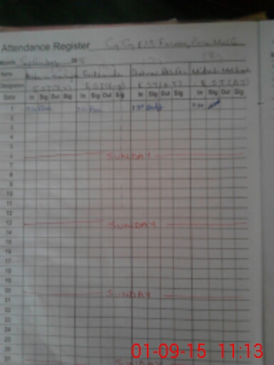 | CNIC | Full Name | Designation | R/C | Absence During Last Calender Month |
