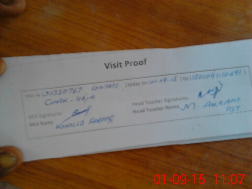 | Attendance Register | Head Teacher | MEA with School | Visit Proof |