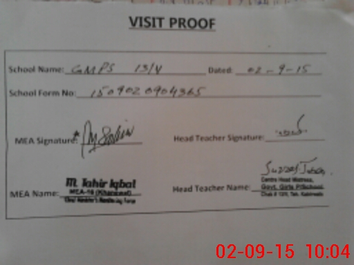 | EMIS Code: 36410346 | Name of School: GGPS 13/V, KABIRWALA | |||