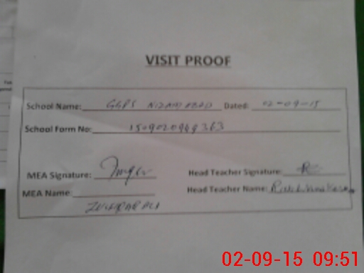 | Attendance Register | Head Teacher | MEA with School | Visit Proof |