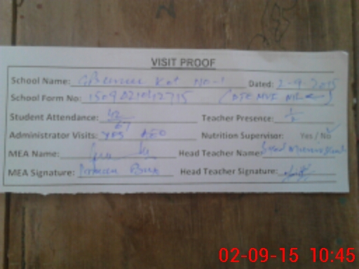 | Attendance Register | Head Teacher | MEA with School | Visit Proof |