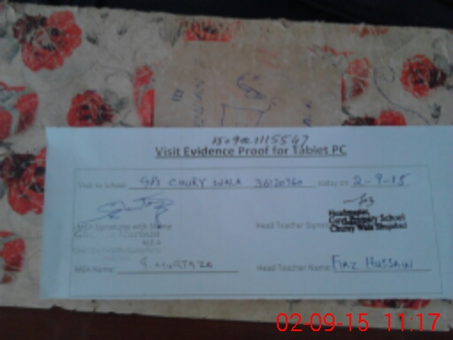 | Attendance Register | Head Teacher | MEA with School | Visit Proof |