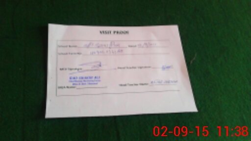 | Attendance Register | Head Teacher | MEA with School | Visit Proof |
