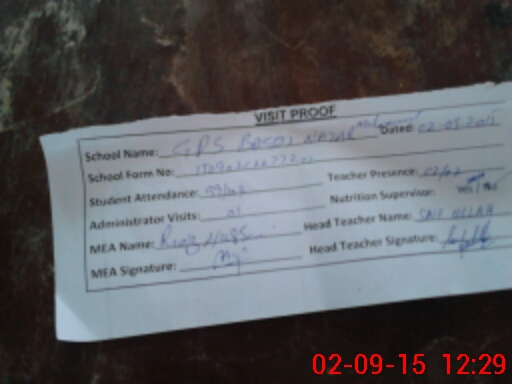 | Attendance Register | Head Teacher | MEA with School | Visit Proof |