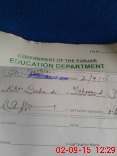 | Name: Mu**** Ja**** Designation: (School Headmaster's/Headmistress's) PST Phone/Cell Number: 03**** |