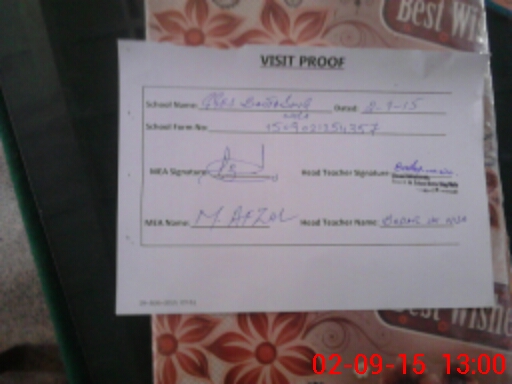 | Attendance Register | Head Teacher | MEA with School | Visit Proof |