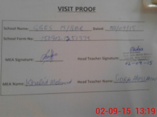 | Attendance Register | Head Teacher | MEA with School | Visit Proof |
