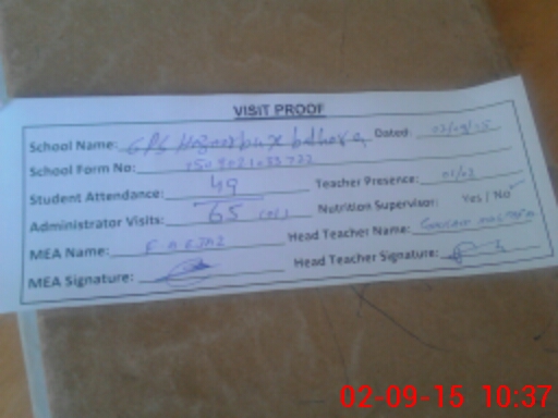 | Attendance Register | Head Teacher | MEA with School | Visit Proof |