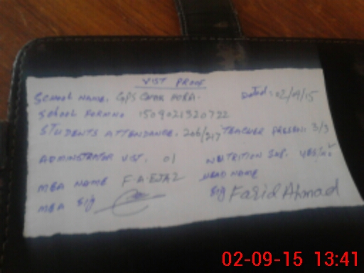 | Attendance Register | Head Teacher | MEA with School | Visit Proof |