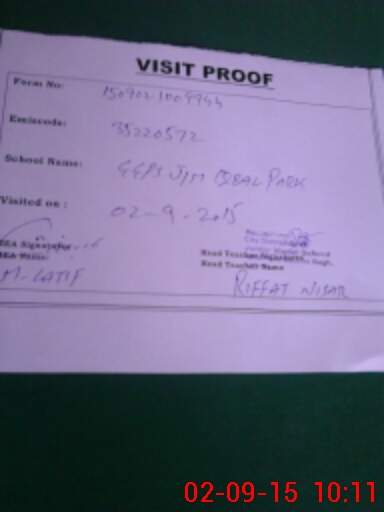 | EMIS Code: 35220572 | Name of School: GGPS JUNIOR MODEL IQBAL PARK | |||