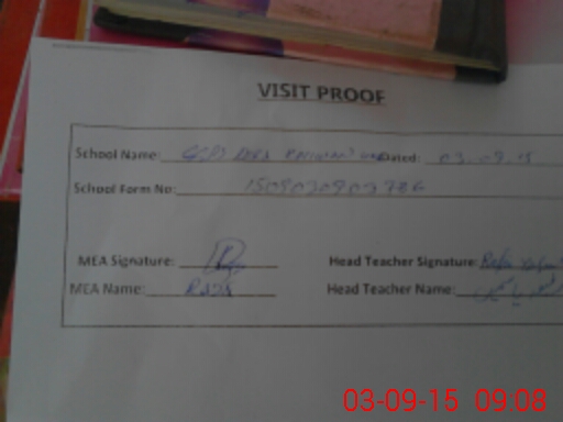 | Attendance Register | Head Teacher | MEA with School | Visit Proof |