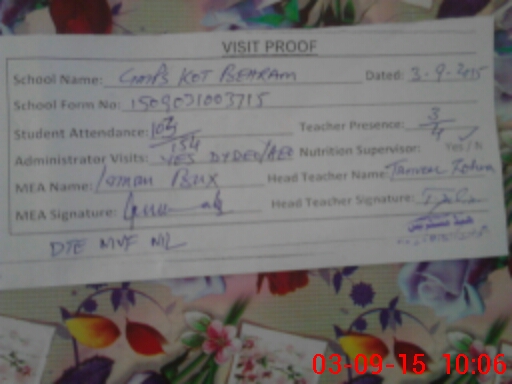 | EMIS Code: 32430175 | Name of School: GGPS KOT BEHRAM | |||